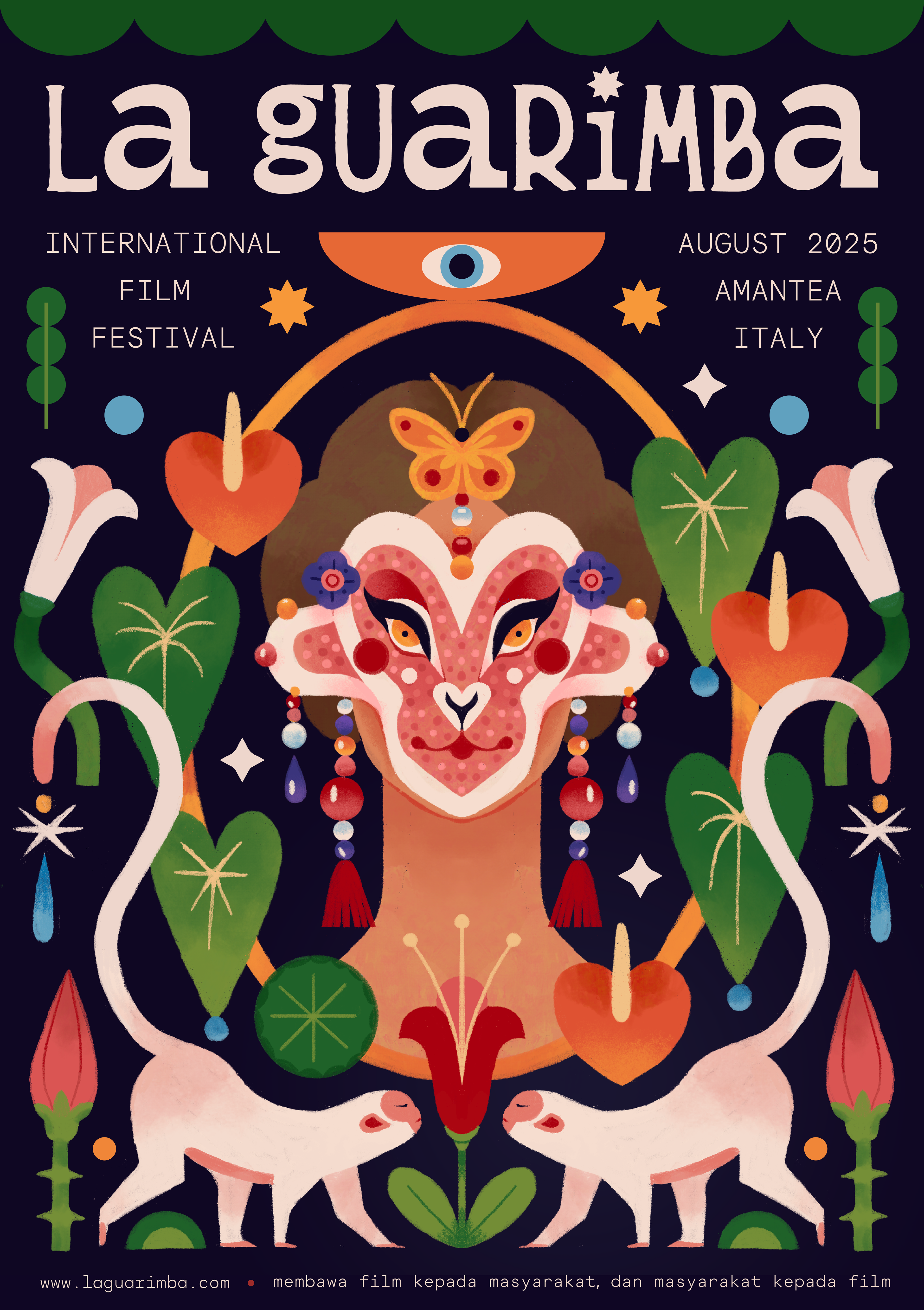 Artists For La Guarimba is an annual illustration exhibition, both digital and physical, within La Guarimba International Film Festival. Each invited artist is asked to reinterpret the festival’s monkey and its slogan, bringing the cinema back to the people and the people back to the cinema, translating it into their own visual language and cultural context. The festival was held in Amantea, Southern Italy, August 7 - 12, 2025.